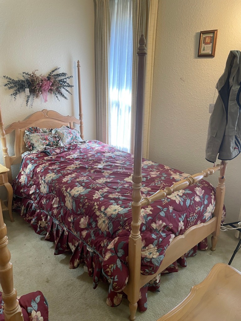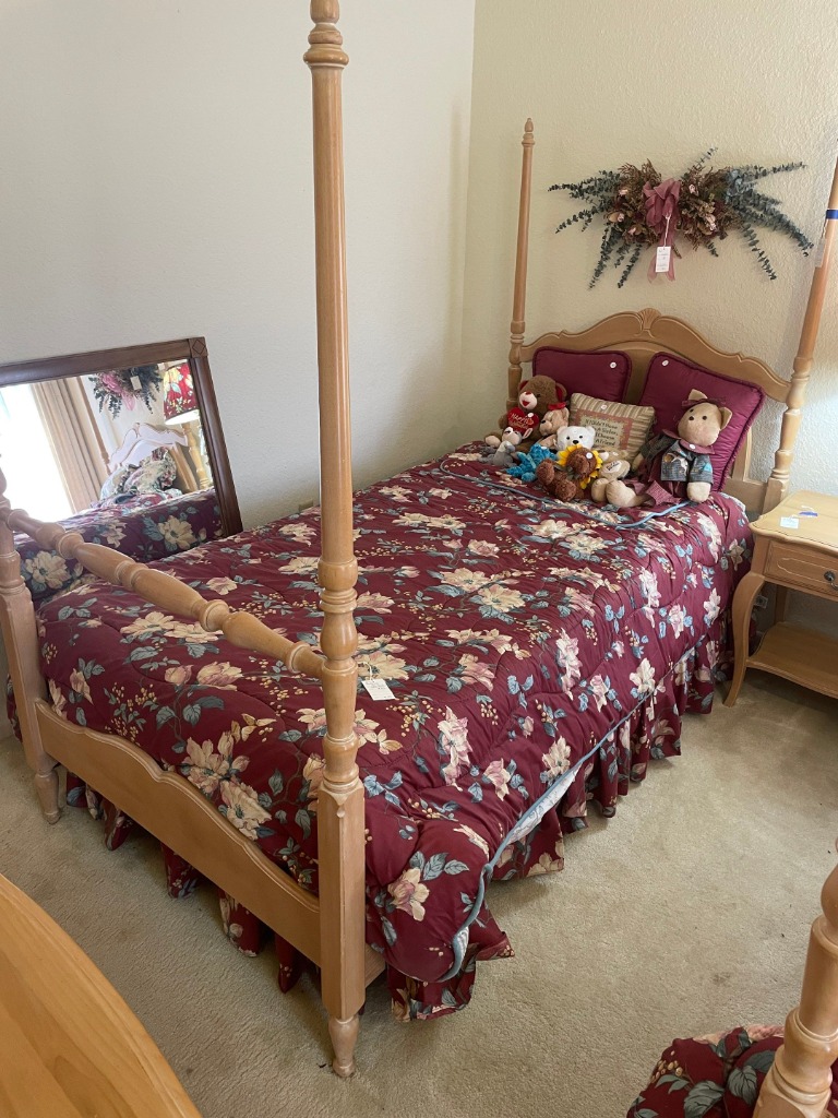 (2) Ethan Allen twin 4-post bed w/mattress + boxspring