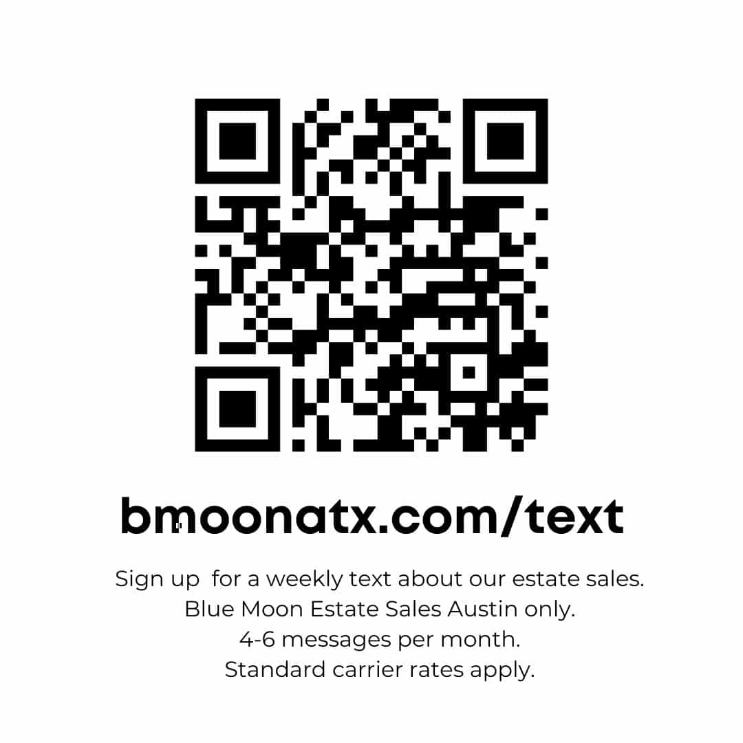 To receive a text notification of events for Blue Moon Estate Sales Austin, enter your phone number here. If you already receive texts from us, there is no need to resubscribe.