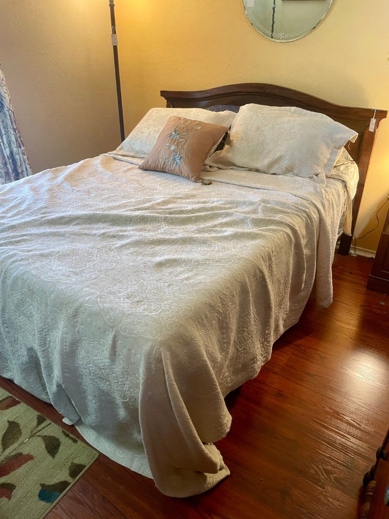 Queen bed, boxspring, mattress