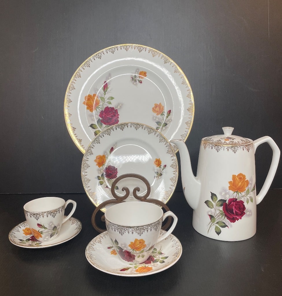 - Vintage Floral Tea Set – Shadow Iris Pattern