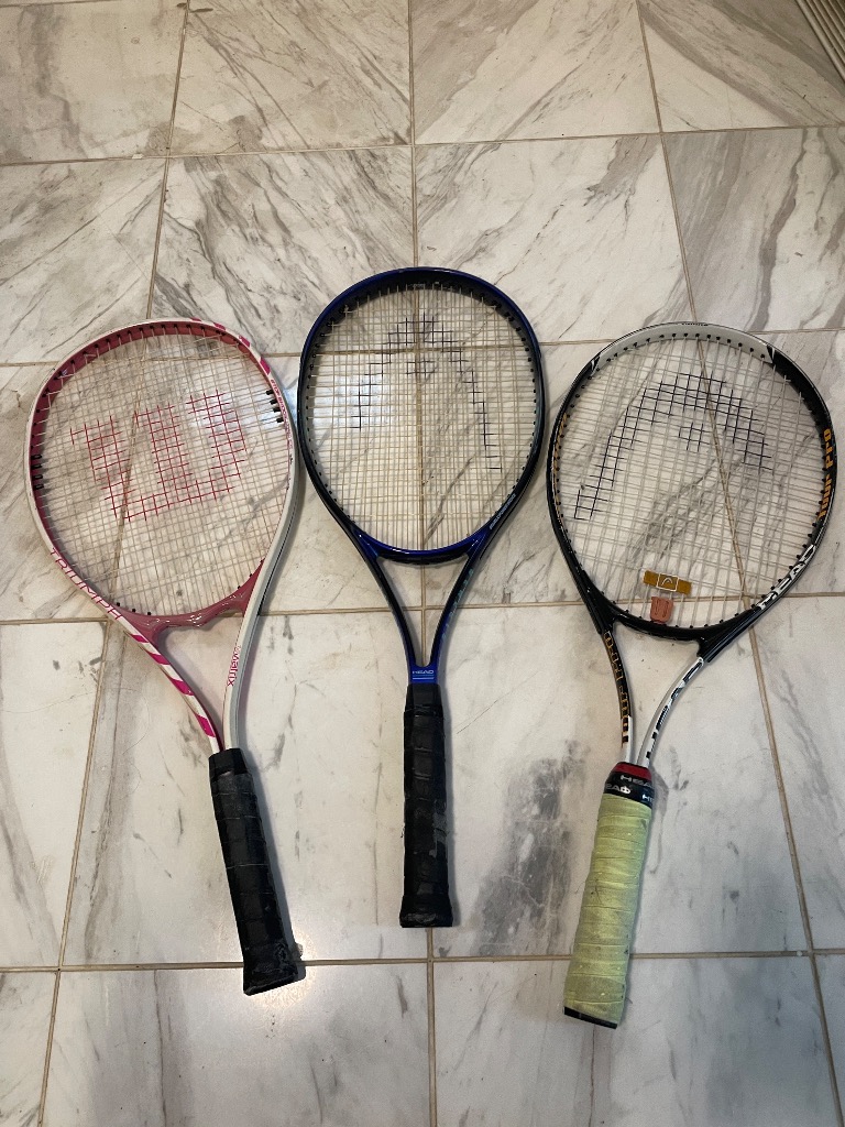 - Assorted Tennis Racquets: HEAD Tour Pro, HEAD Double Power, and Triumph Matrix