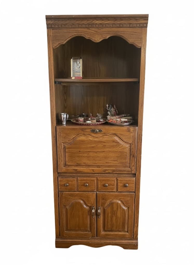 - Solid Oak Armoire Entertainment Center with Hutch