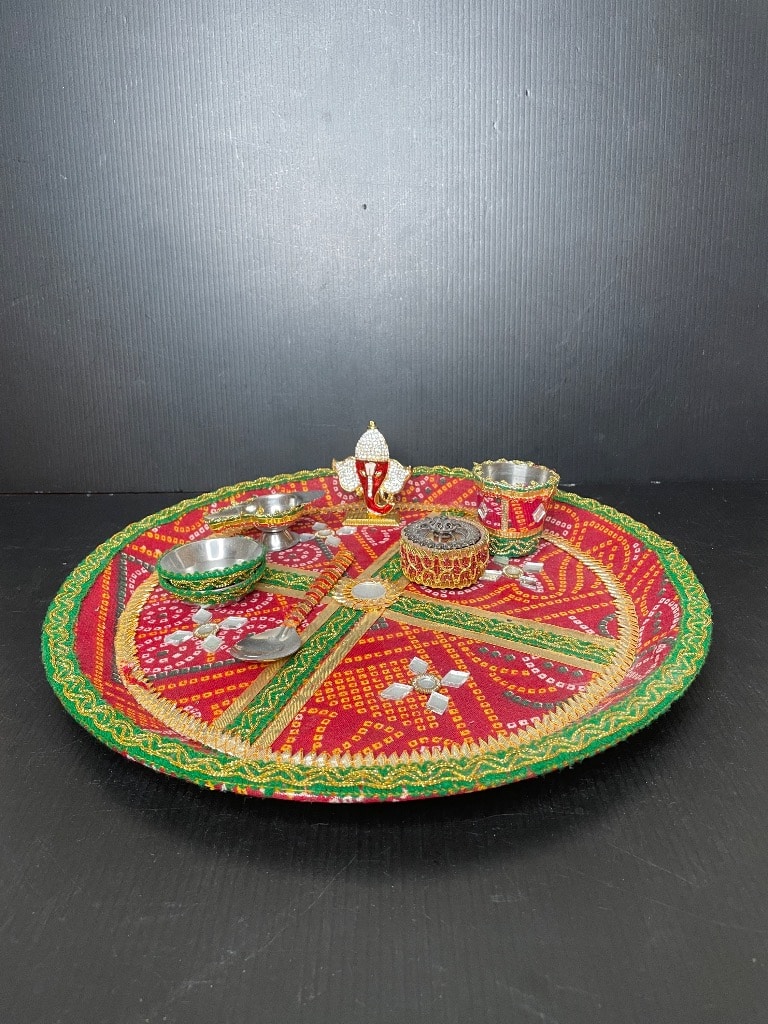 - Decorative Karwa Chauth Pooja Thali Set with Ganesha Idol