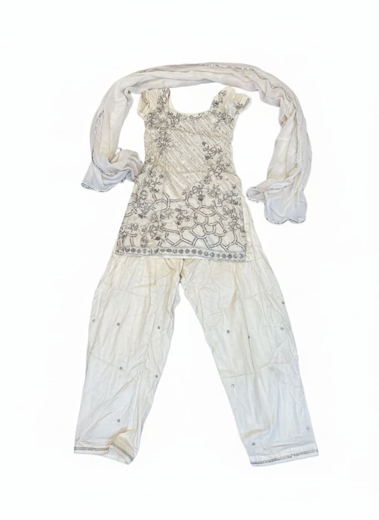 - White Embroidered and Sequined Sharara Suit