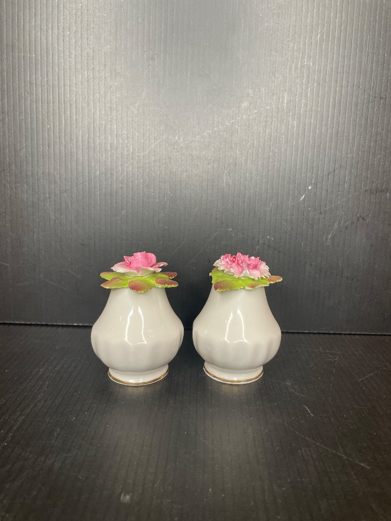 - Heart-Shaped Trinket Box and Small Vase with Floral Motif