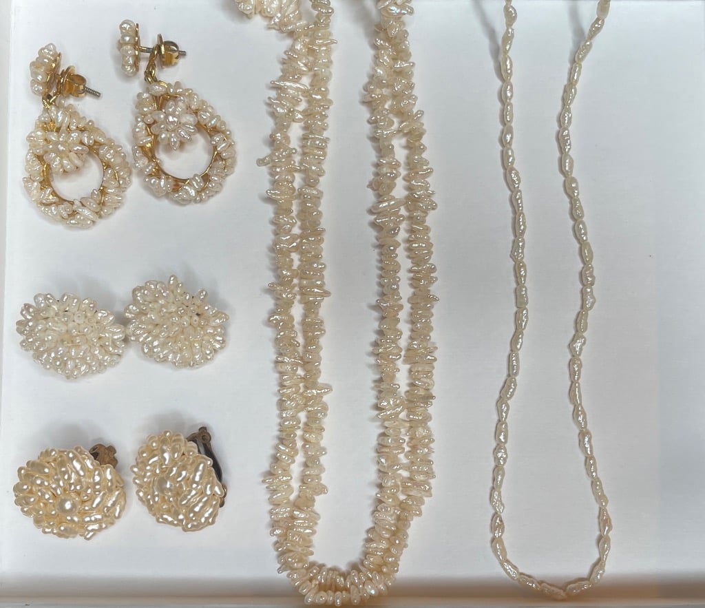 - Rice & Baroque Pearl Necklace and Earrings