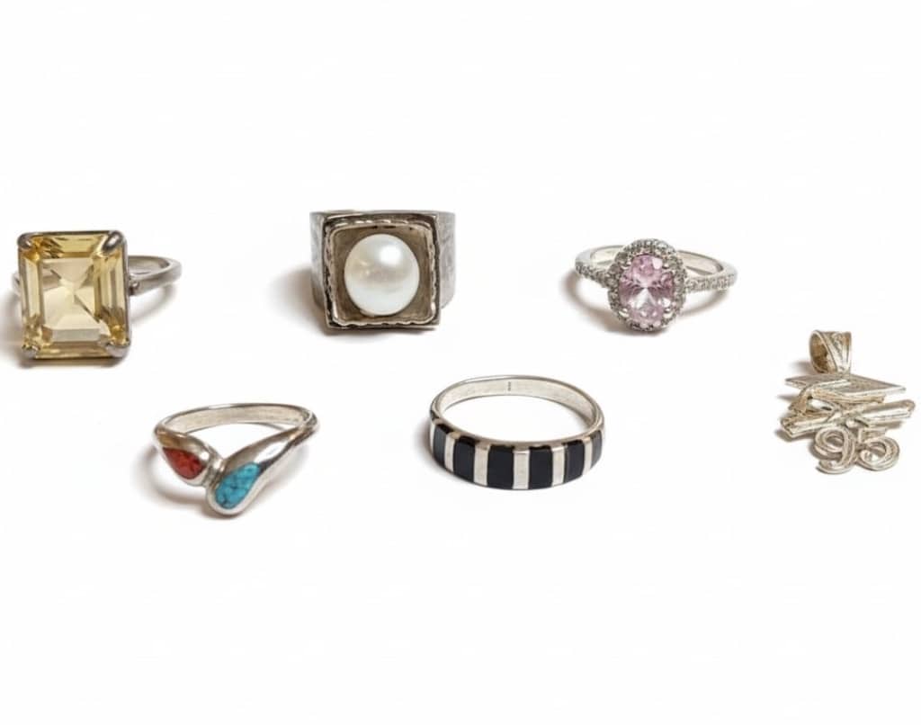 - Assorted Sterling Silver Rings with Semi-Precious and Natural Stones