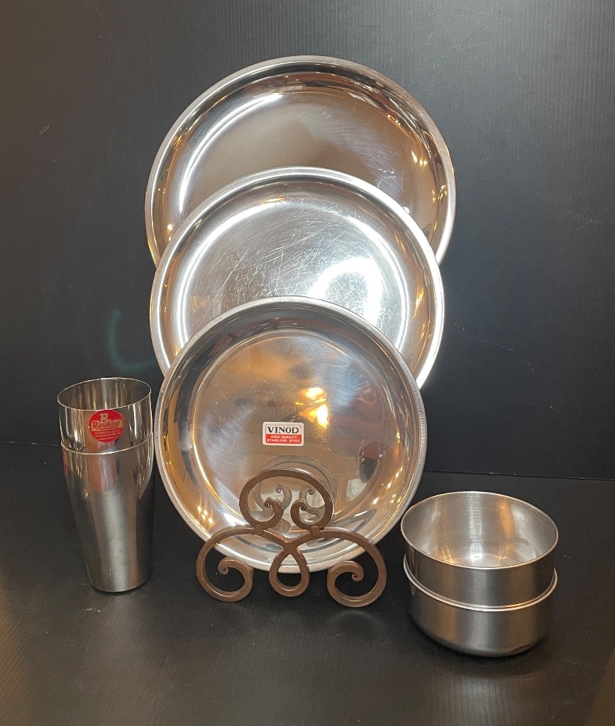 - Vintage Stainless Steel Kitchenware Assortment