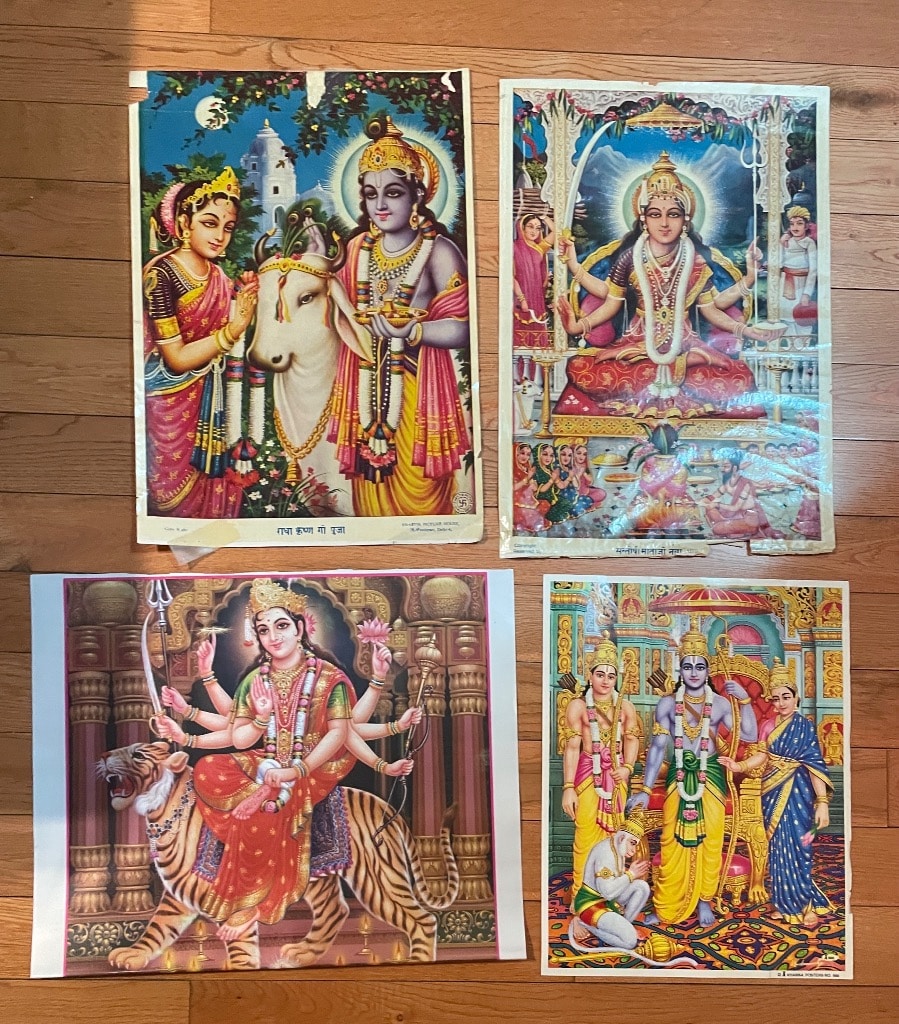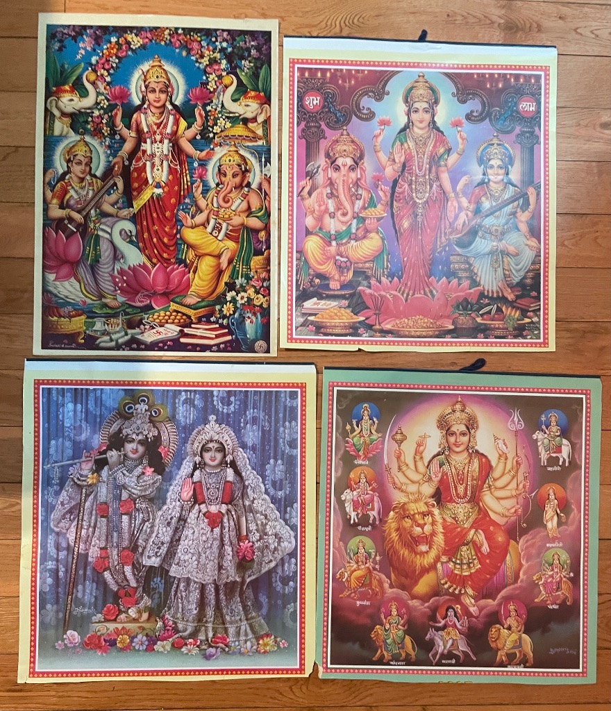 - Vintage Hindu Religious Prints (Radha Krishna, Durga, Rama, Sita, Lakshmana, Santoshi Mata)