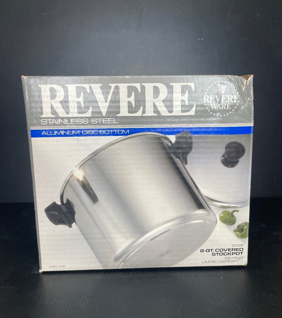 - Vintage Revere Ware 8-Qt. Covered Stockpot with Copper Clad Bottom
