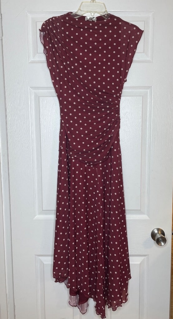 - Women’s Burgundy Polka Dot Ruched Asymmetrical Hem Dress