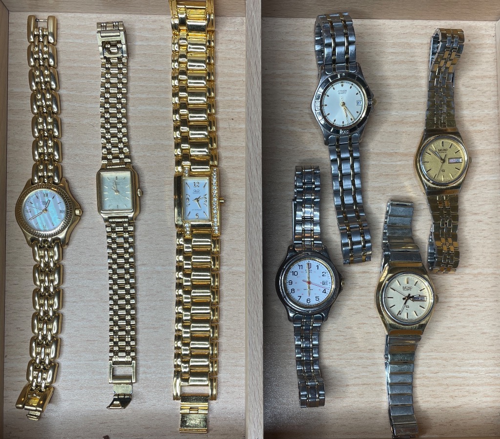 - Wristwatches: Timex, Citizen, Seiko