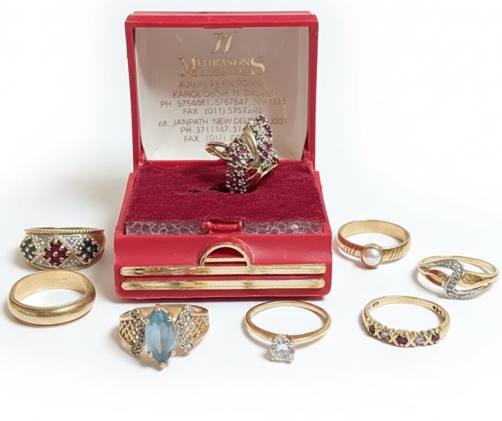 Jewelry Treasure Trove – a mix of gold, silver, and costume pieces, including necklaces, bracelets, earrings, and rings—great for everyday wear or special occasions