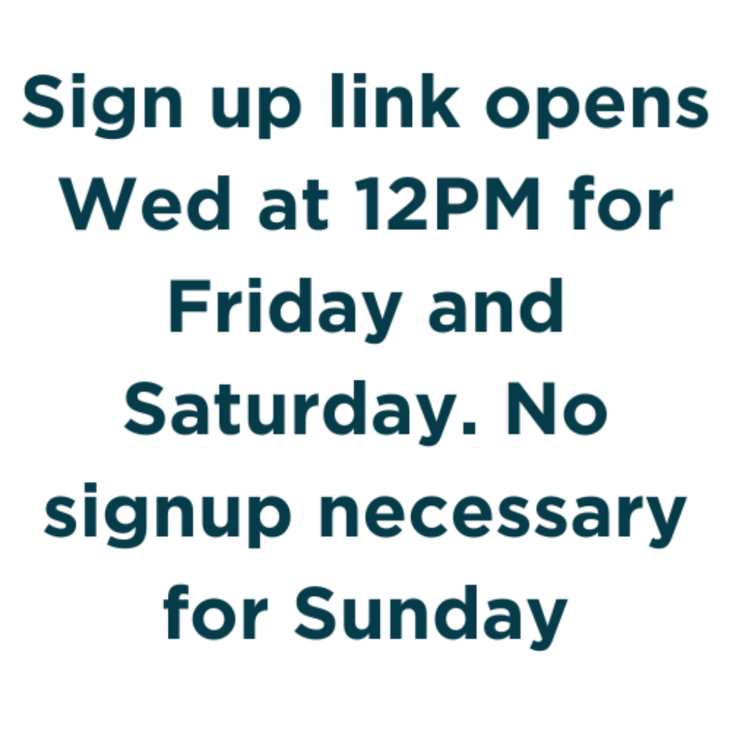 Sign up starting at 12PM on Wednesday, April 8.
