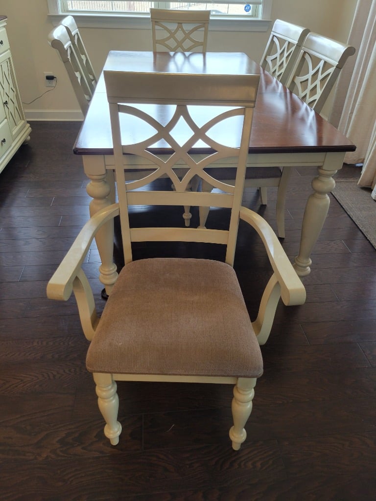Cream color dining table and chairs