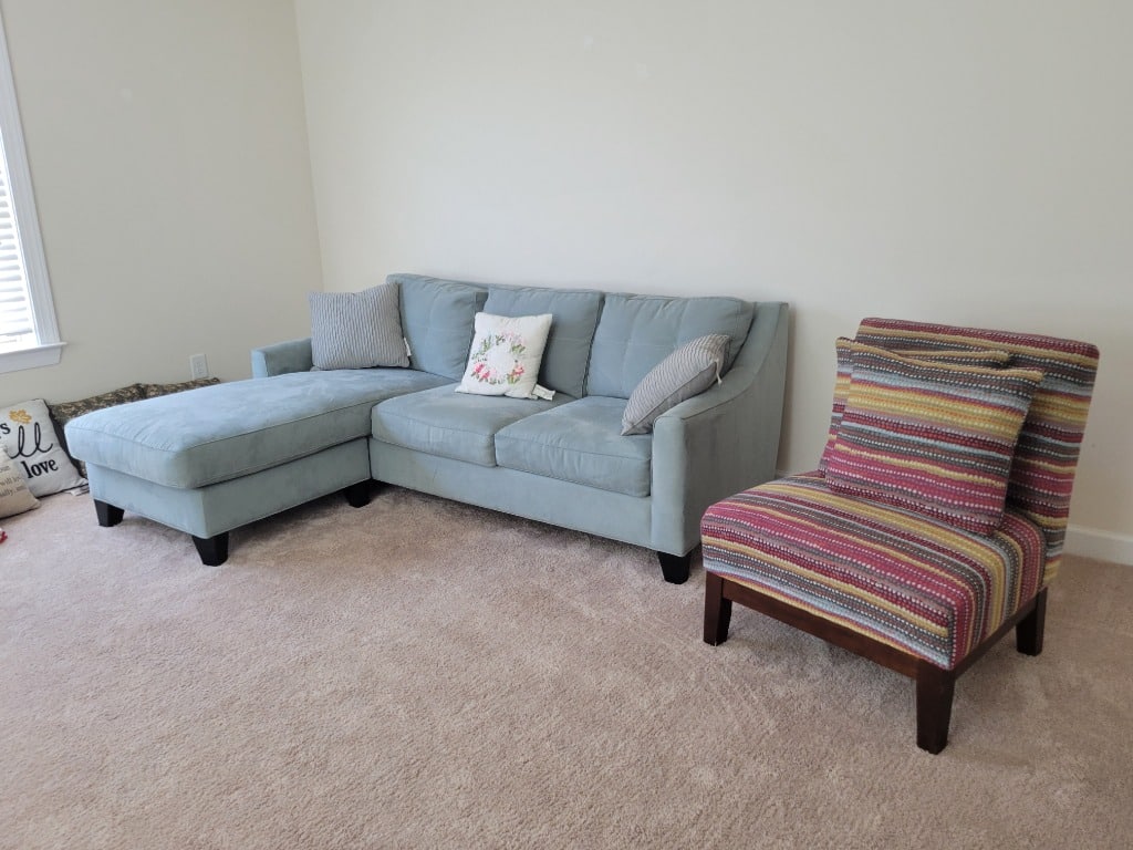 Like new small sectional with matching chair