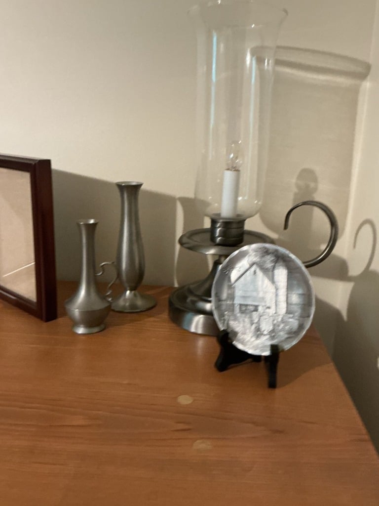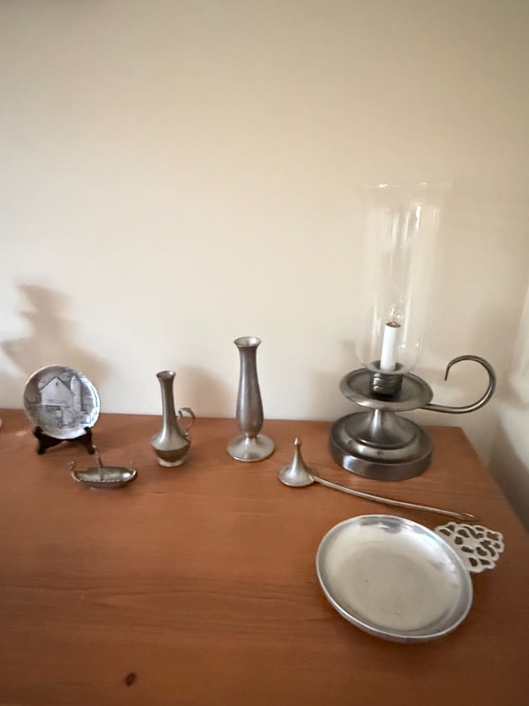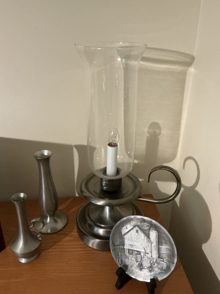 Pewter Decorative Items Collection with Hurricane Lamp