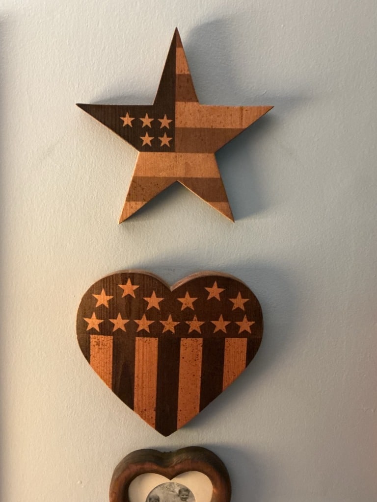 Wooden American Flag Star and Heart Decor