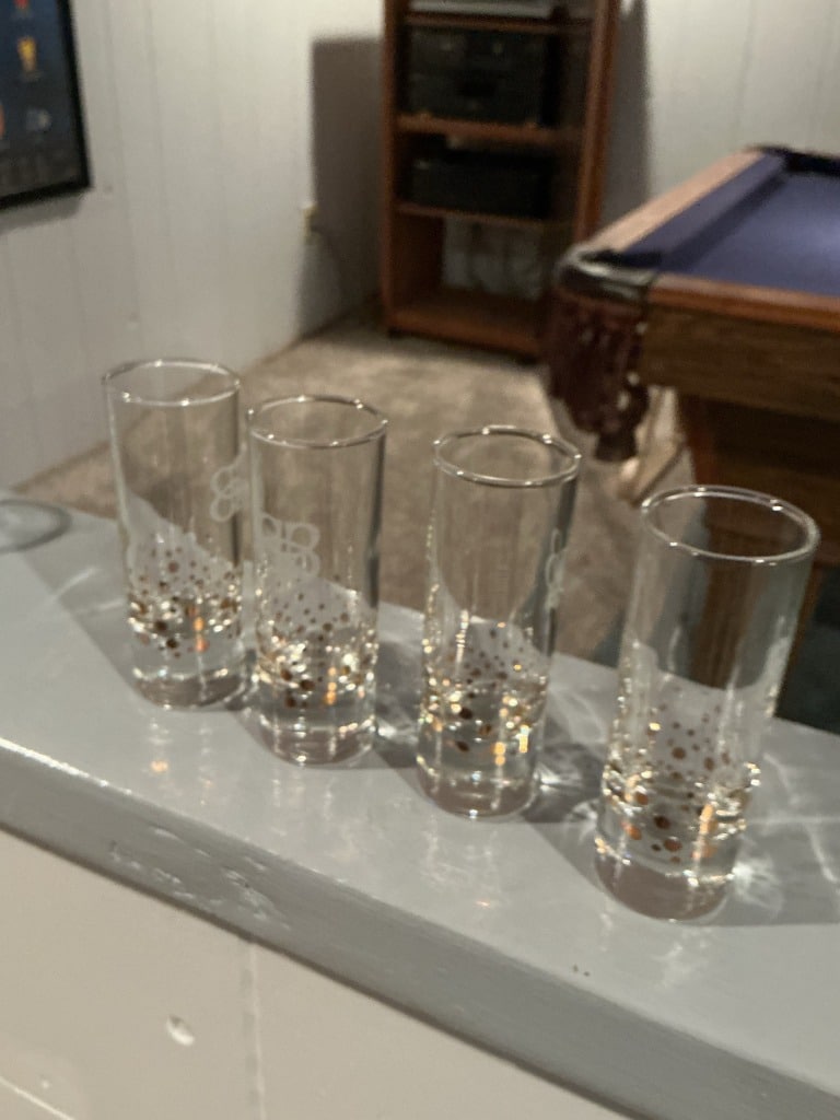 Set of Four Absolut Vodka Martini Glasses and Four Shamrock Shot Glasses