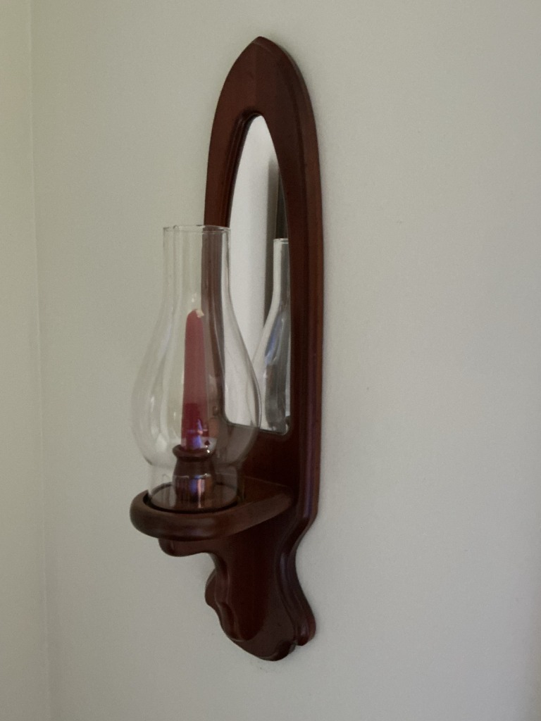 Vintage Wooden Wall Sconce with Glass Hurricane and Mirror