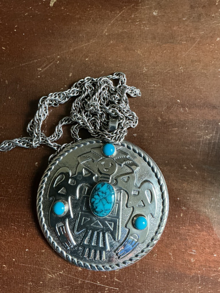 Bell Trading Post Sterling Silver Turquoise Thunderbird Pendant Necklace