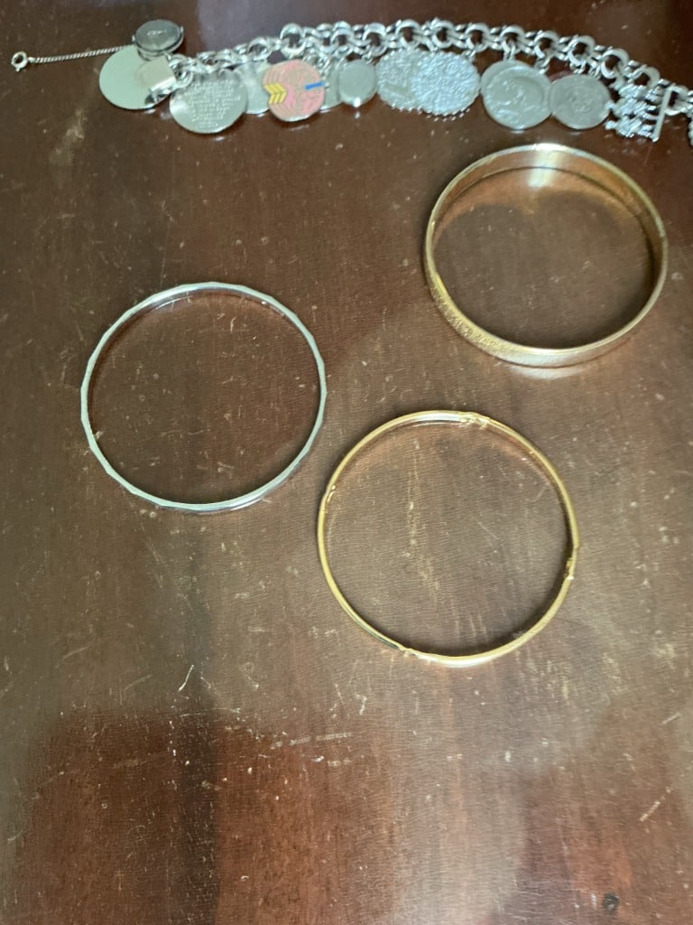 Sterling Silver Charm Bracelet with Three Bangles