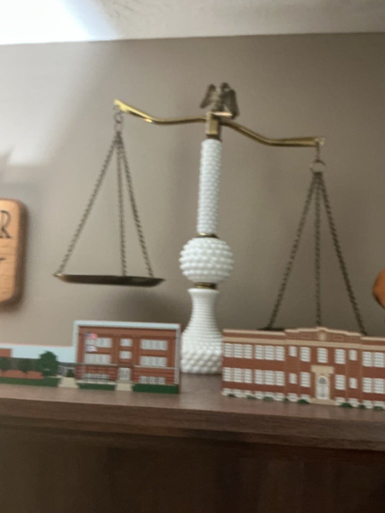 Vintage Hobnail Milk Glass Scales of Justice Figurine