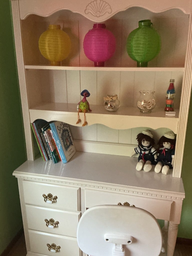 Vintage White Children’s Desk and Hutch with Swivel Chair