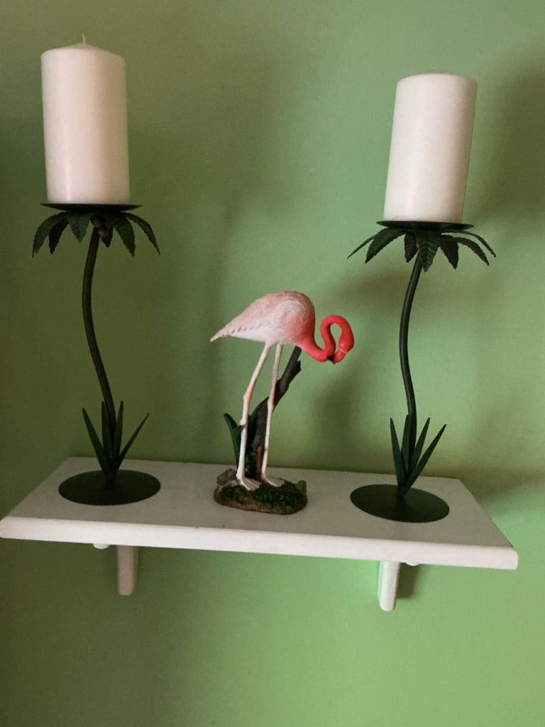 Flamingo and Palm Leaf Candle Holder Set with Shelf