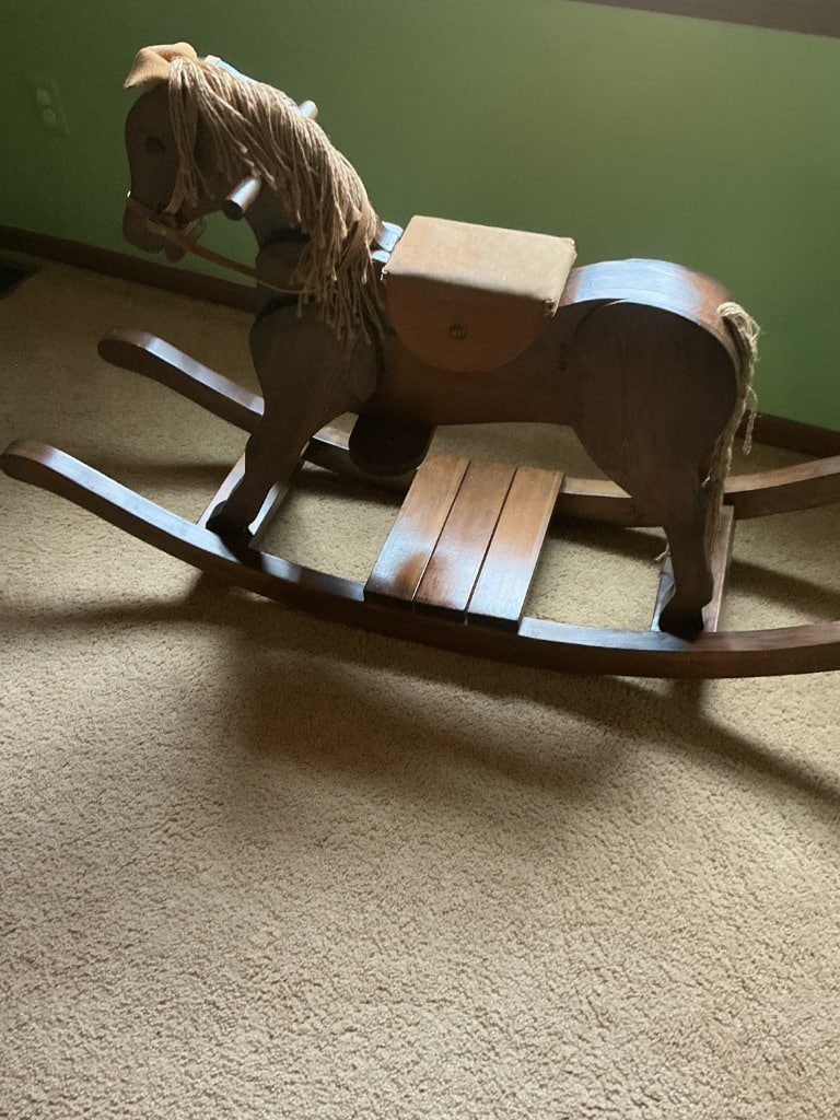 Handmade Wooden Rocking Horse with Padded Seat