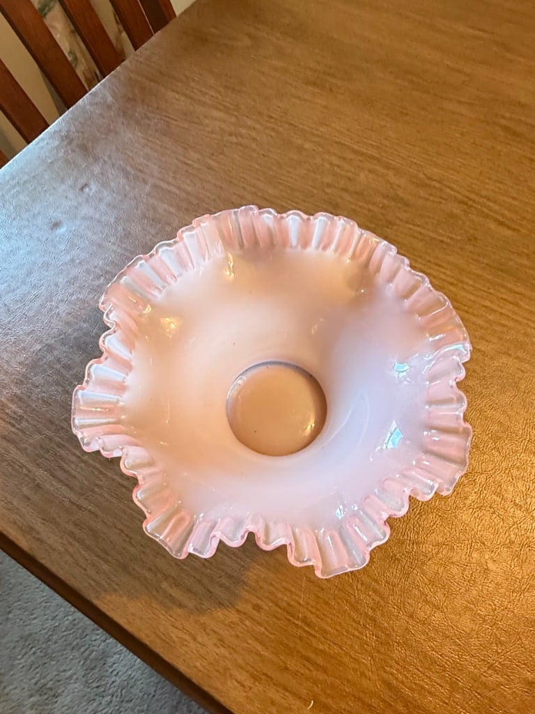 Fenton Pink Opalescent Glass Ruffled Bowl