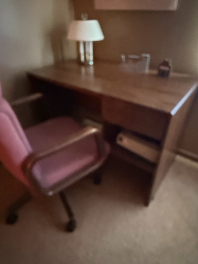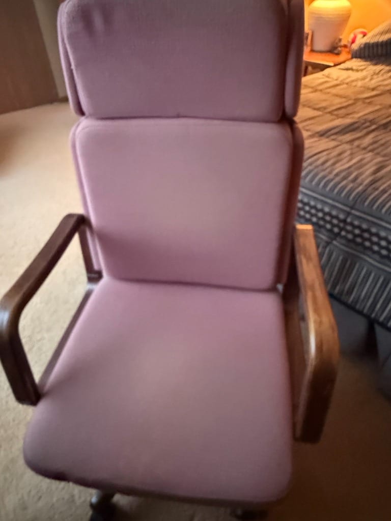 Vintage Pink Upholstered Desk Chair with Wooden Arms