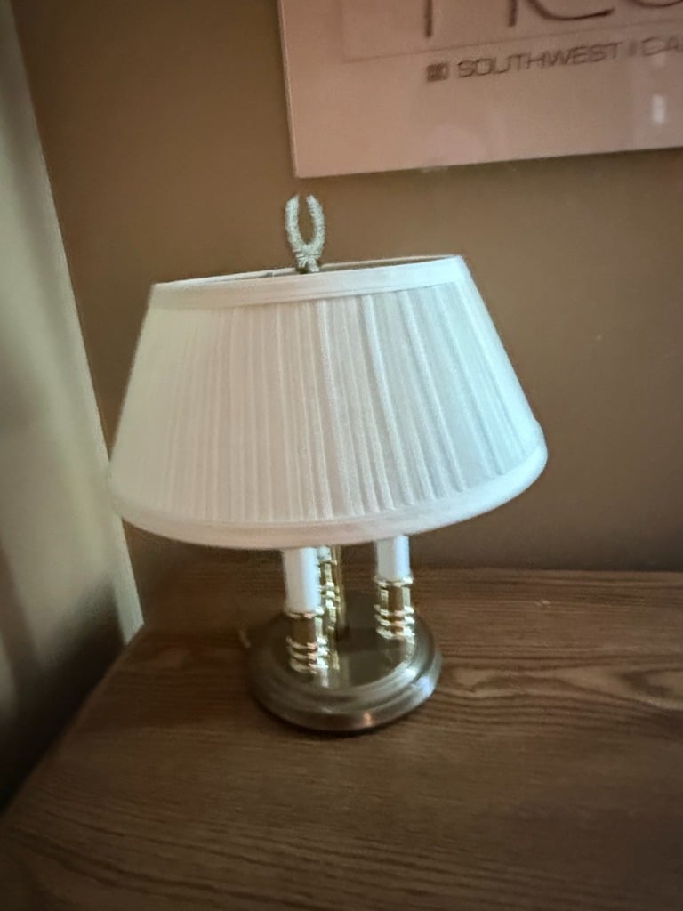 Brass Bouillotte Candlestick Table Lamp with Pleated Shade
