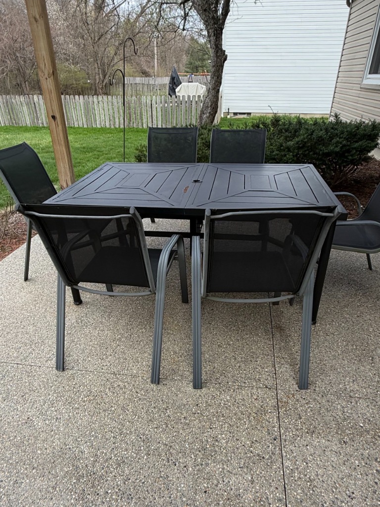 Black Metal Outdoor Dining Set with Sling Chairs