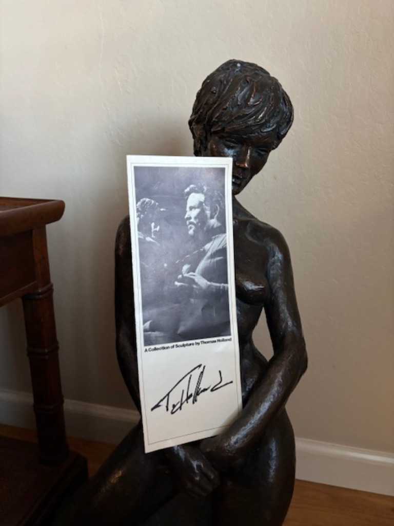 Art sculpture of woman wearing pearls