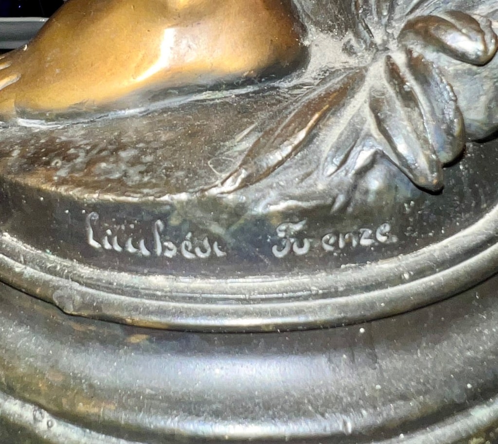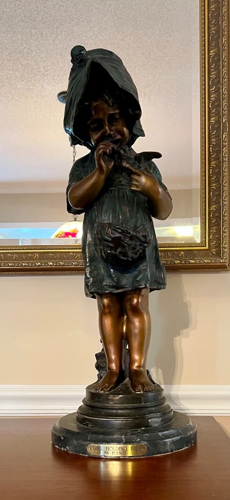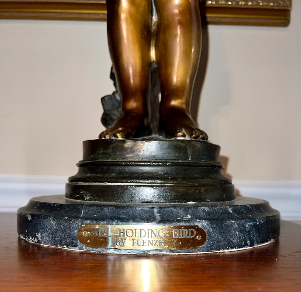 Fuenze “Girl Holding Bird” bronze statue