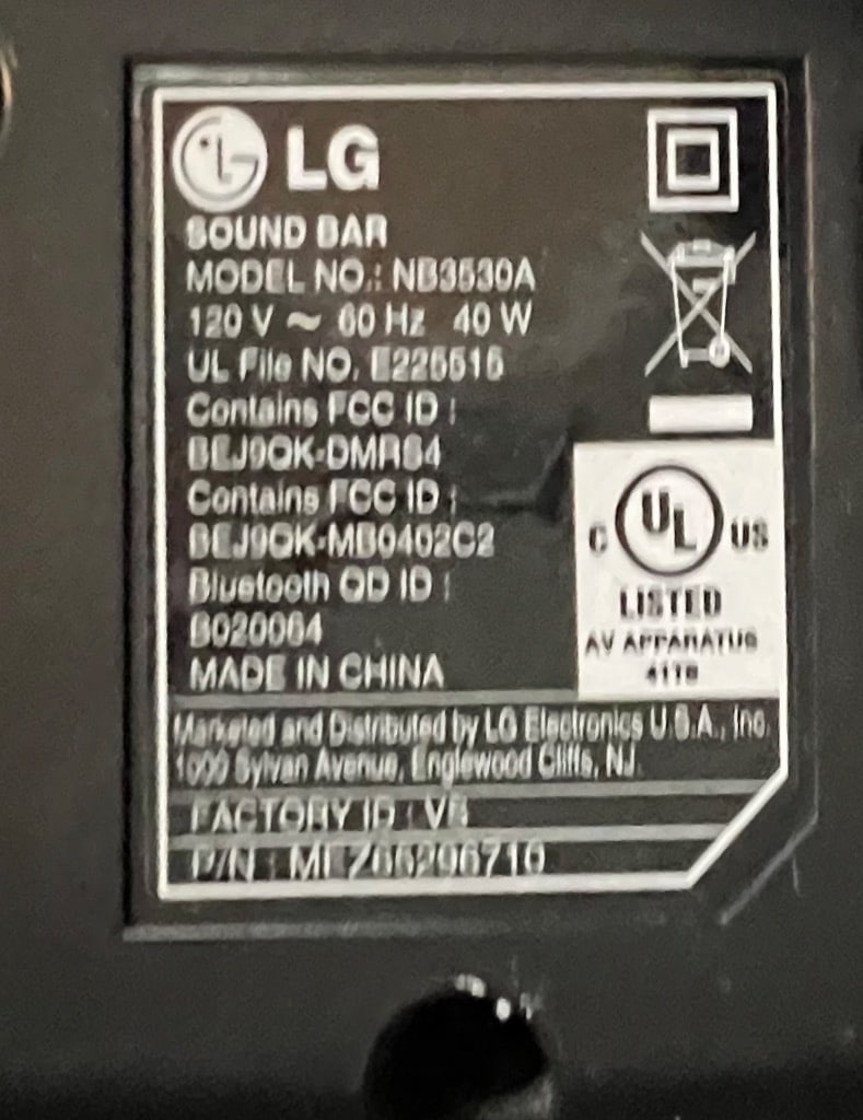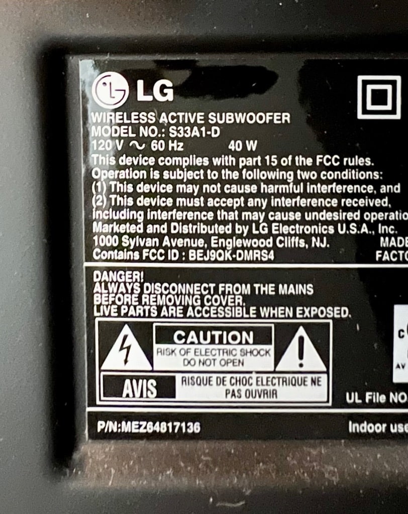 LG Subwoofer and Sound Bar