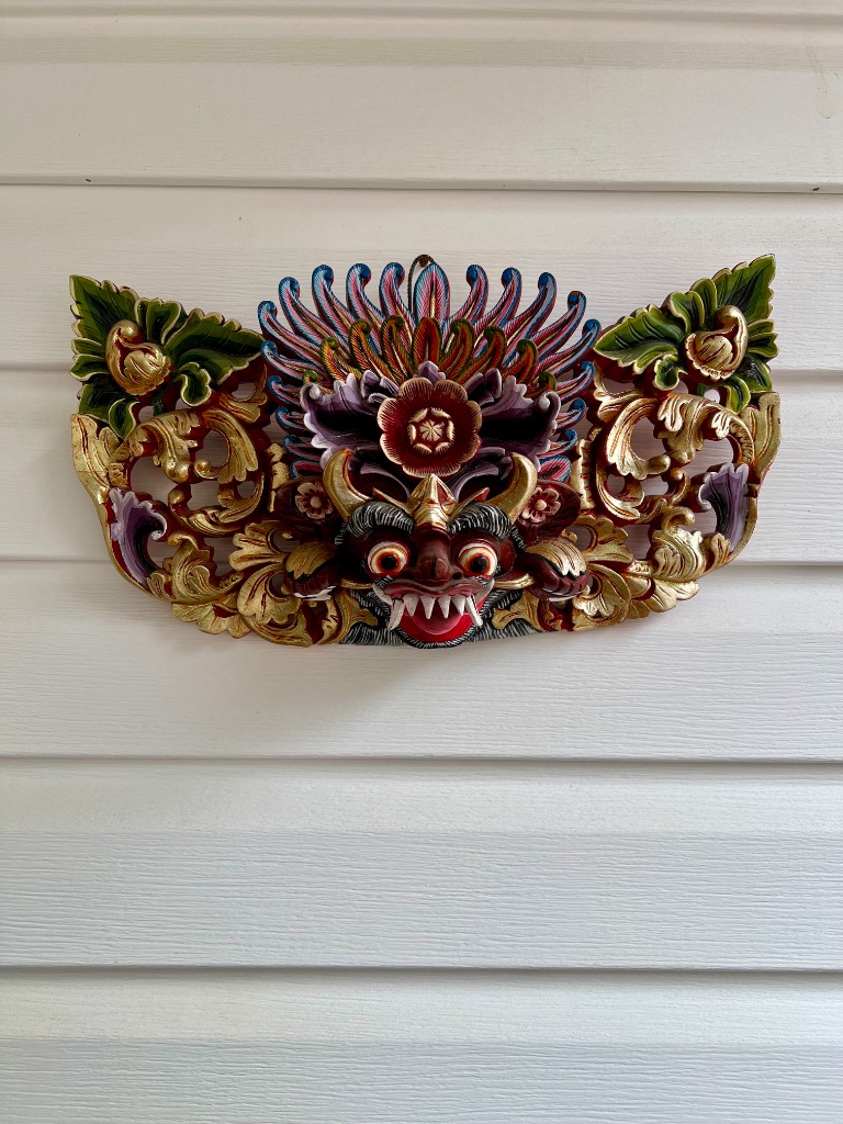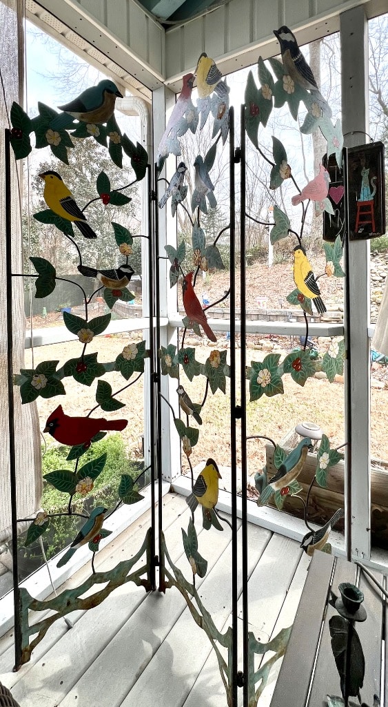 Painted bird motif decorative screen (3 panel)