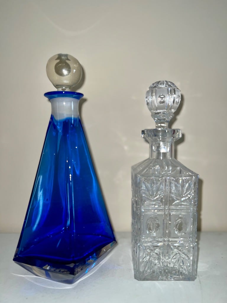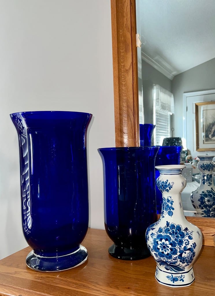Various cobalt blue vases and decanters