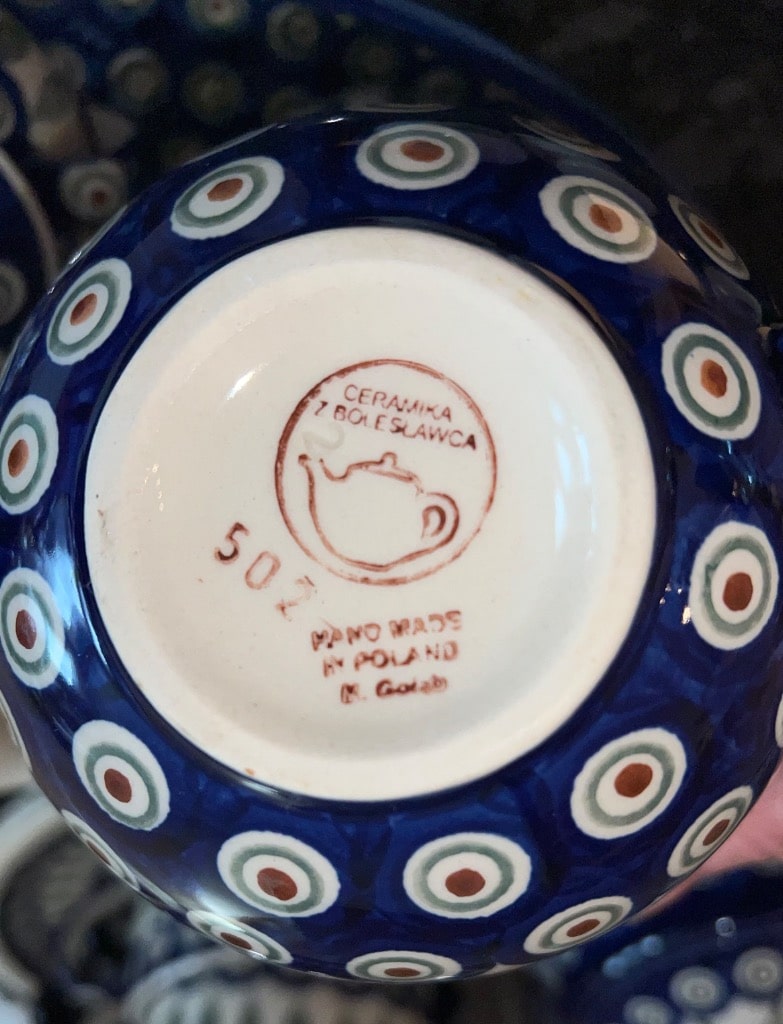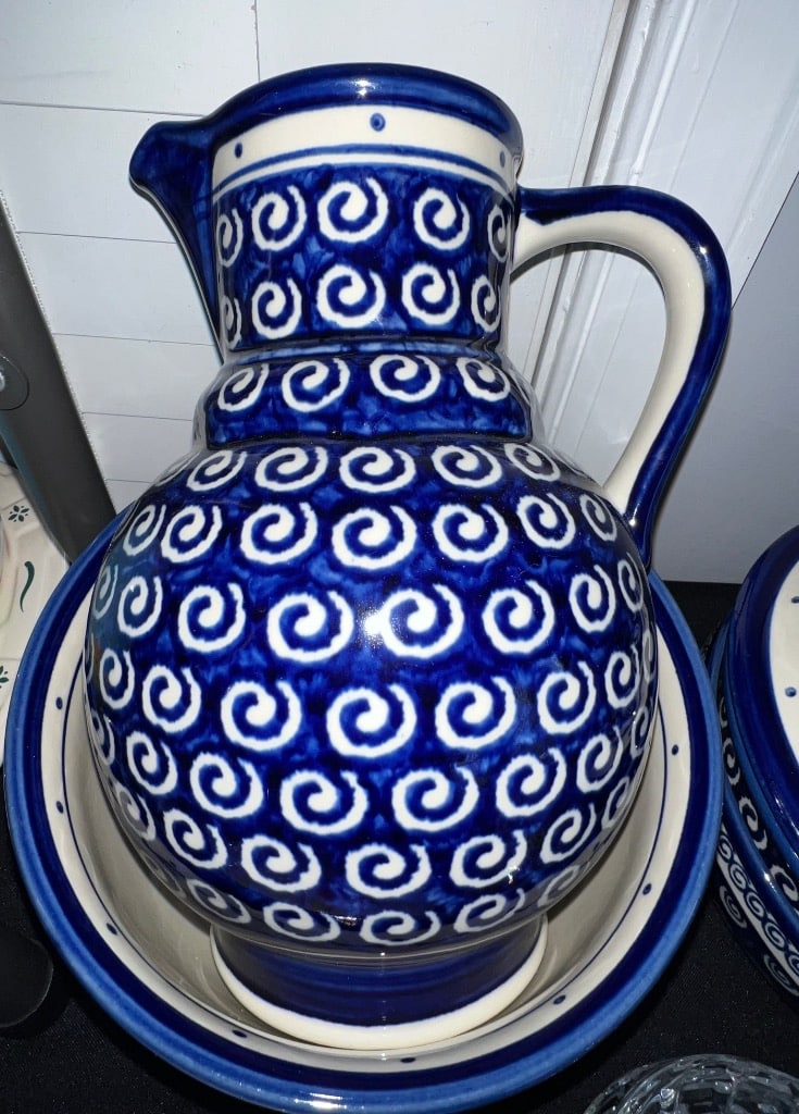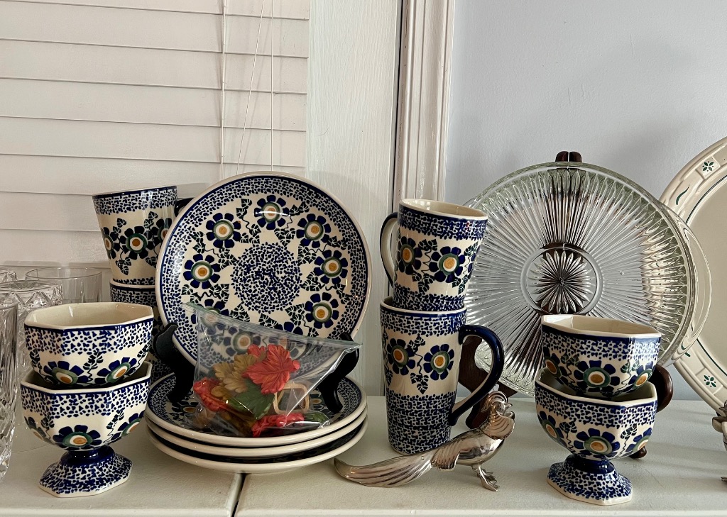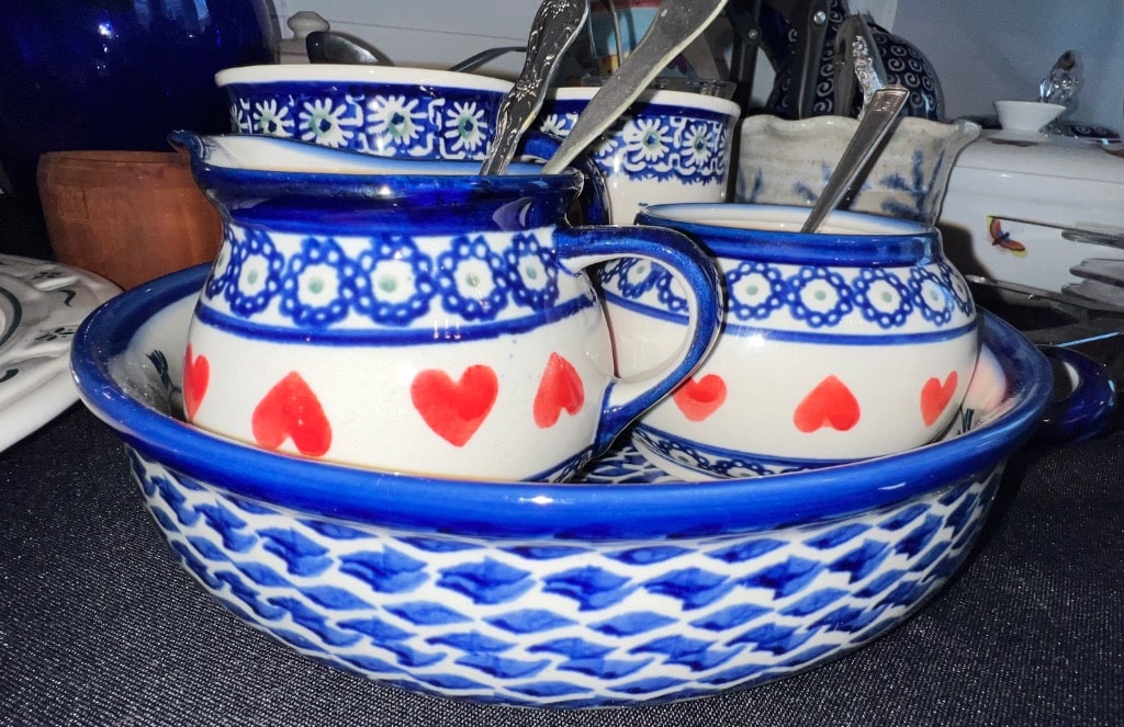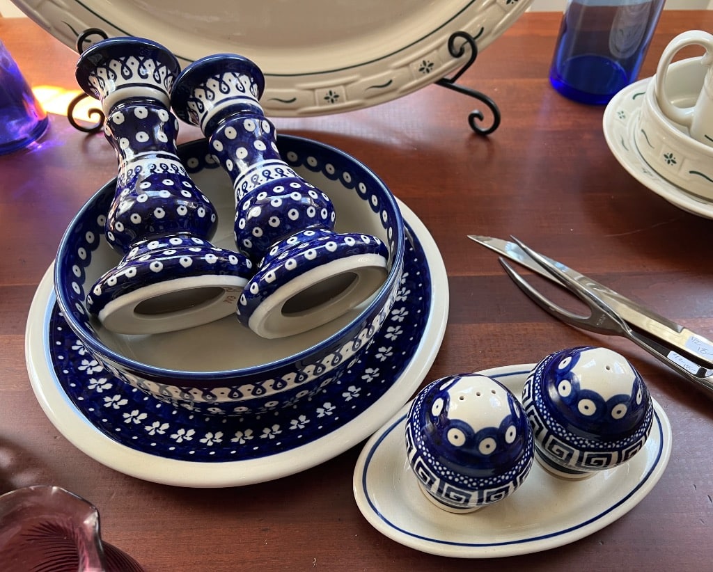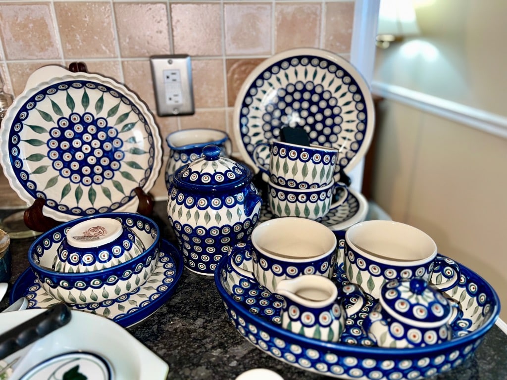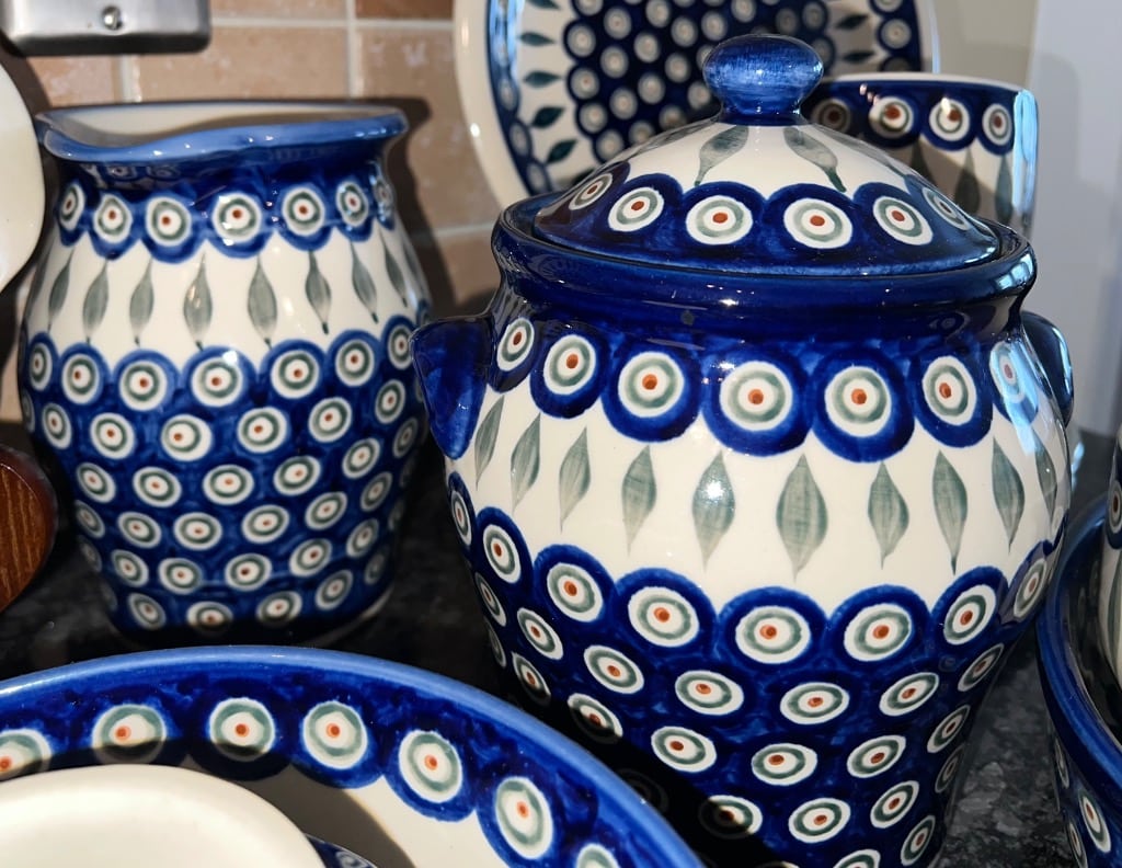 Various patterns and pieces of Boleslawiec pottery made in Poland
