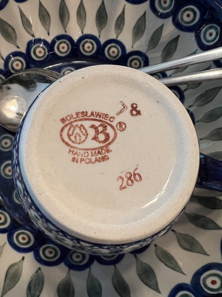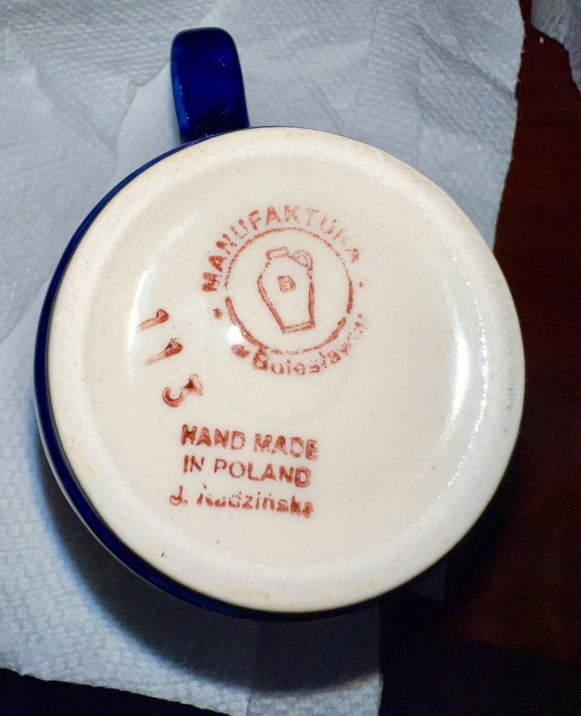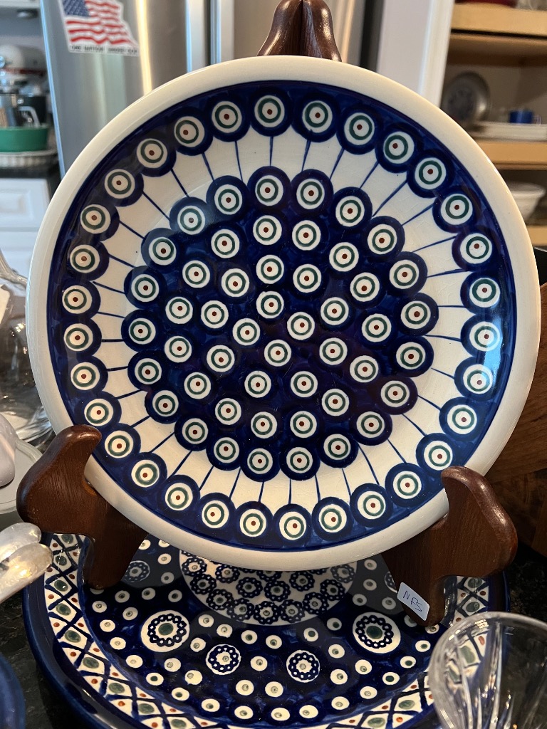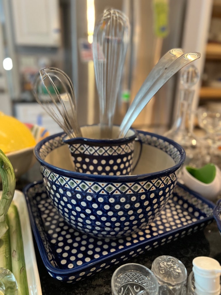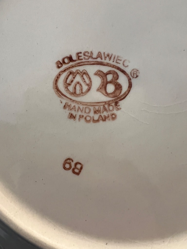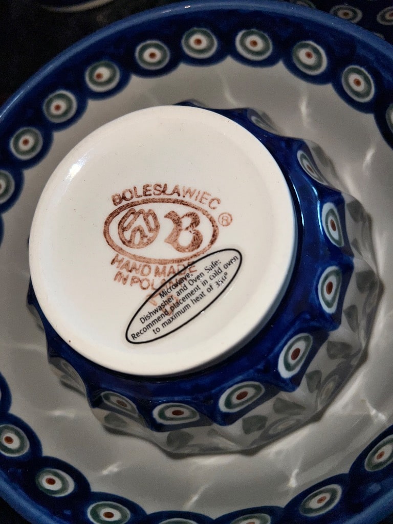 Various patterns and pieces of Boleslawiec pottery made in Poland