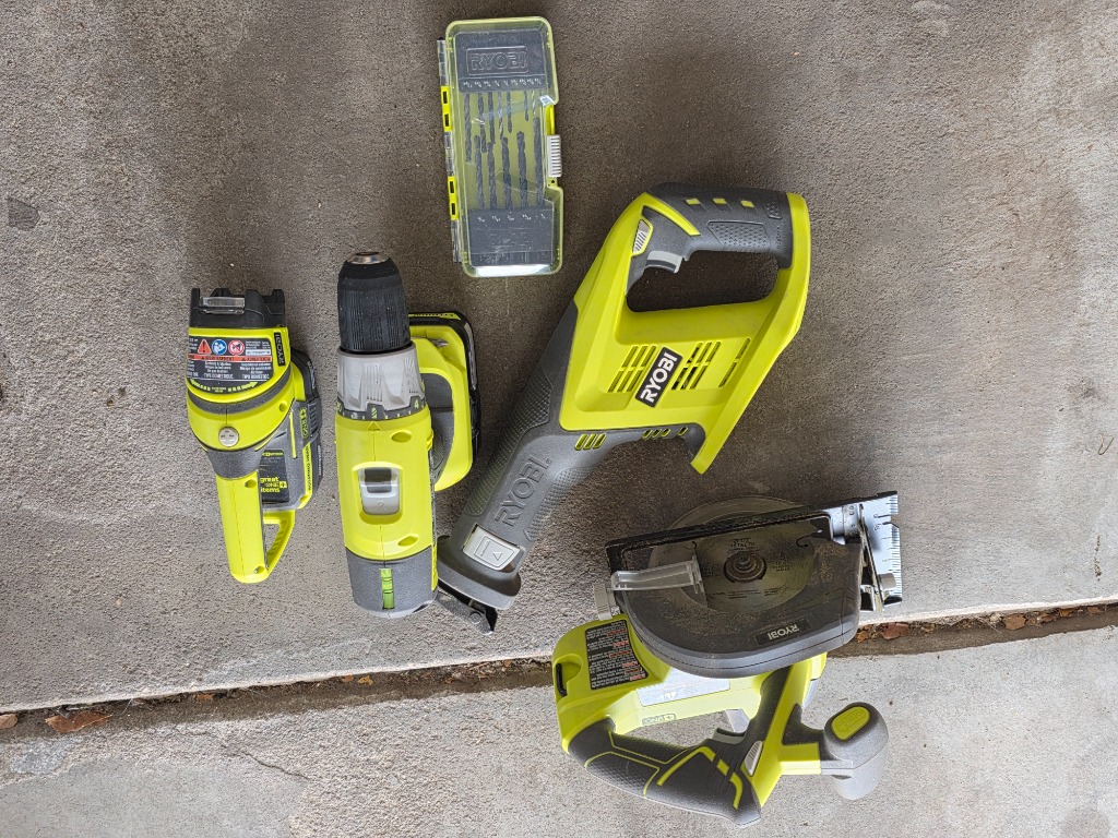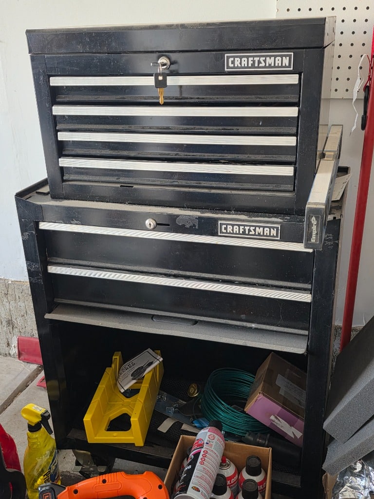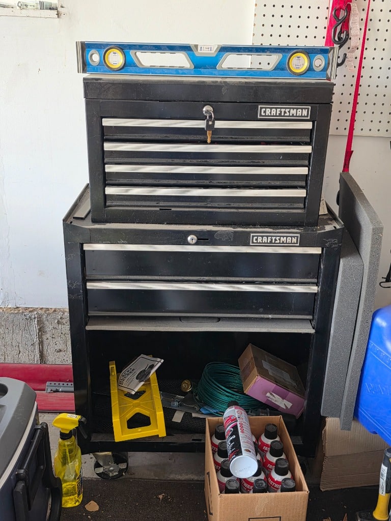 Craftsman toolbox, Ryobi Battery powered Tools, yard tools,