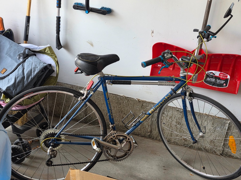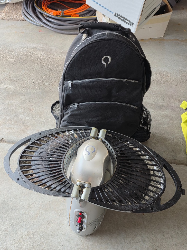 Exercise and camping equipment, backpack grill, Bianchi bike