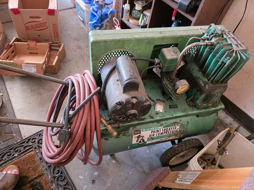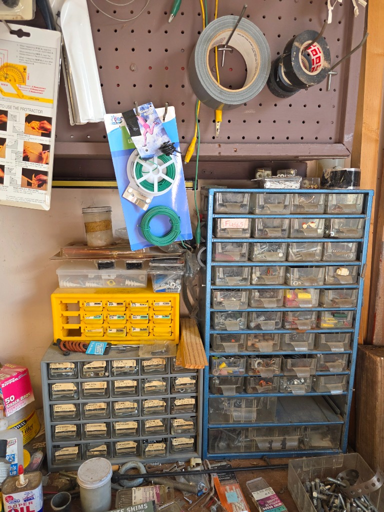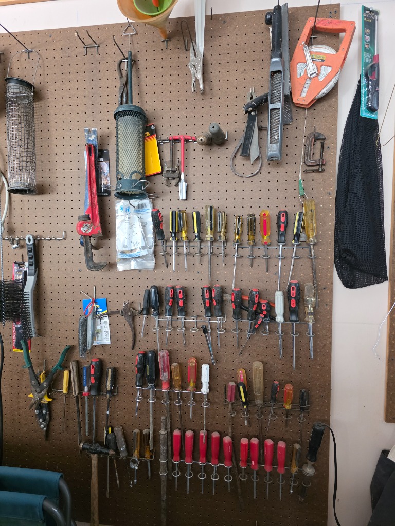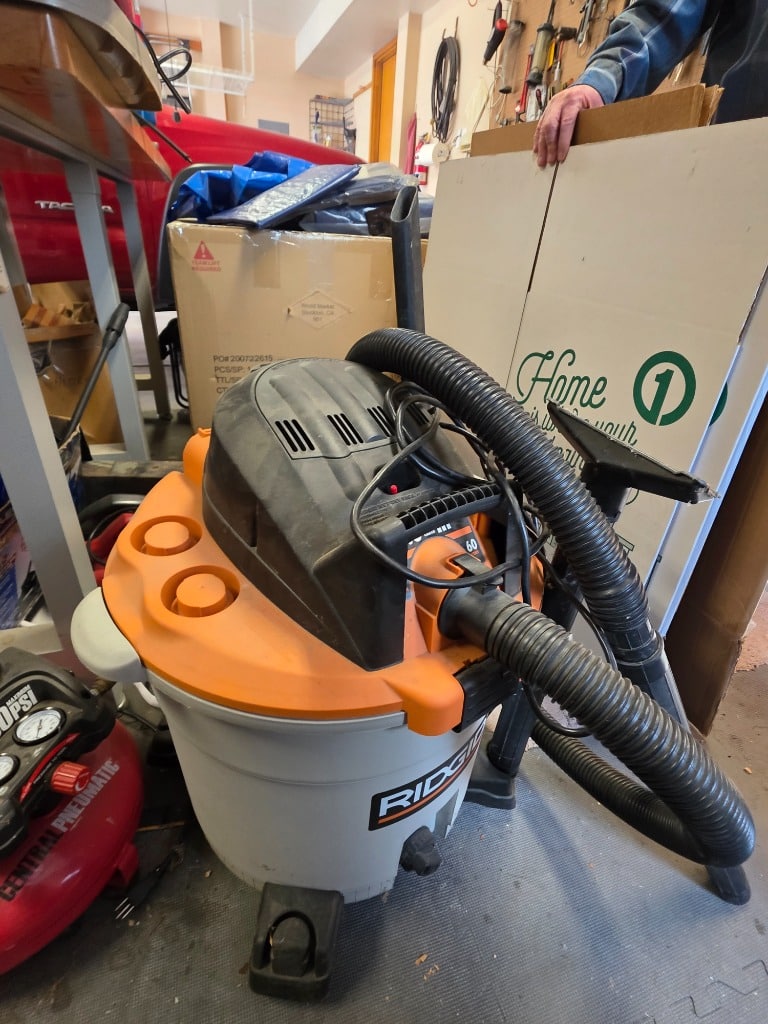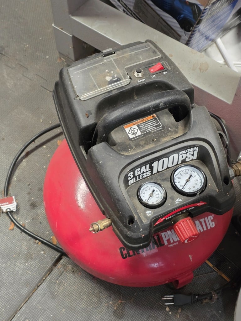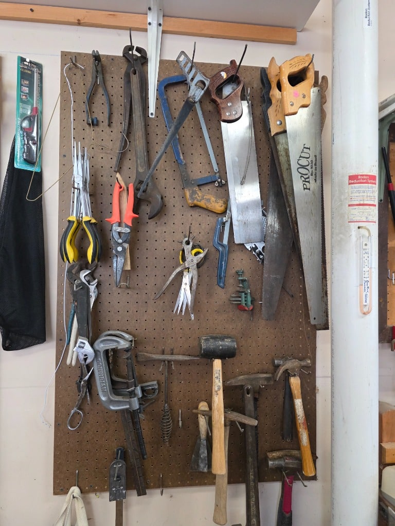 Outdoor: Patio furniture, yard decor, power tools, air compressor, hand tools and hardware, shop vac, ladders,