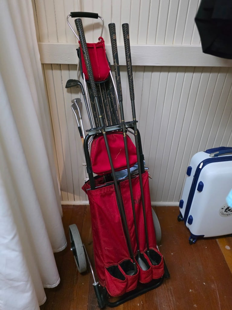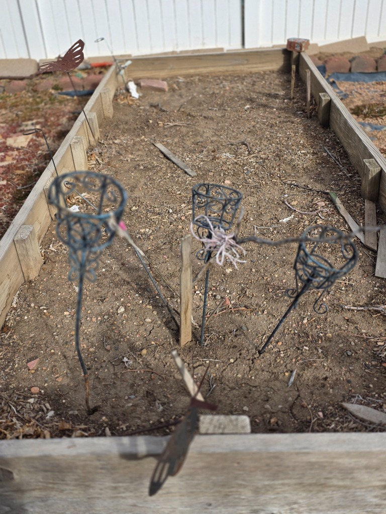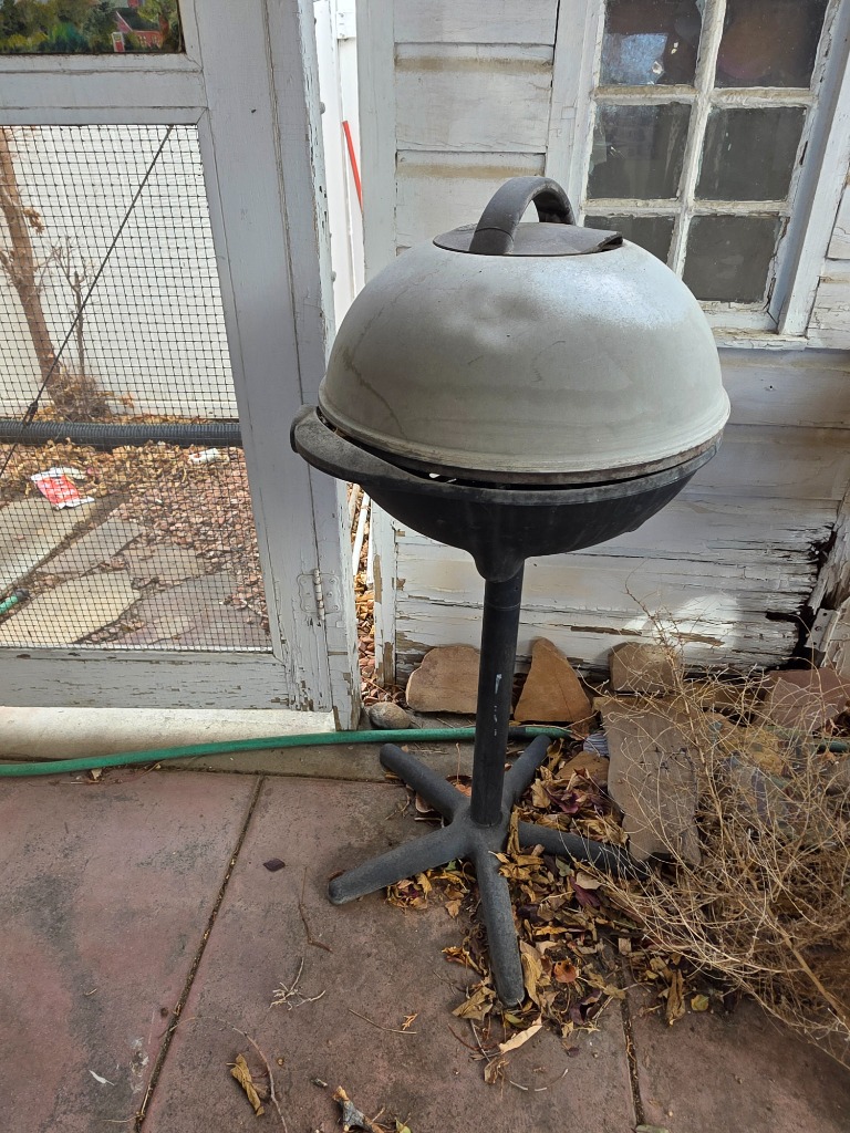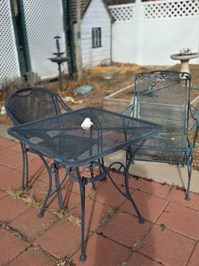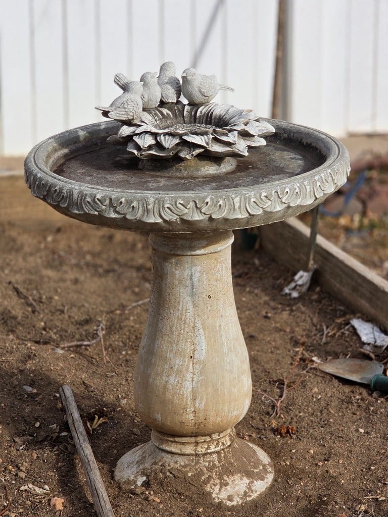 Great yard decor: Statues, metal stake pieces, cast-iron furniture, mower, bicycles, hanging swing chair, electric grill, bird baths