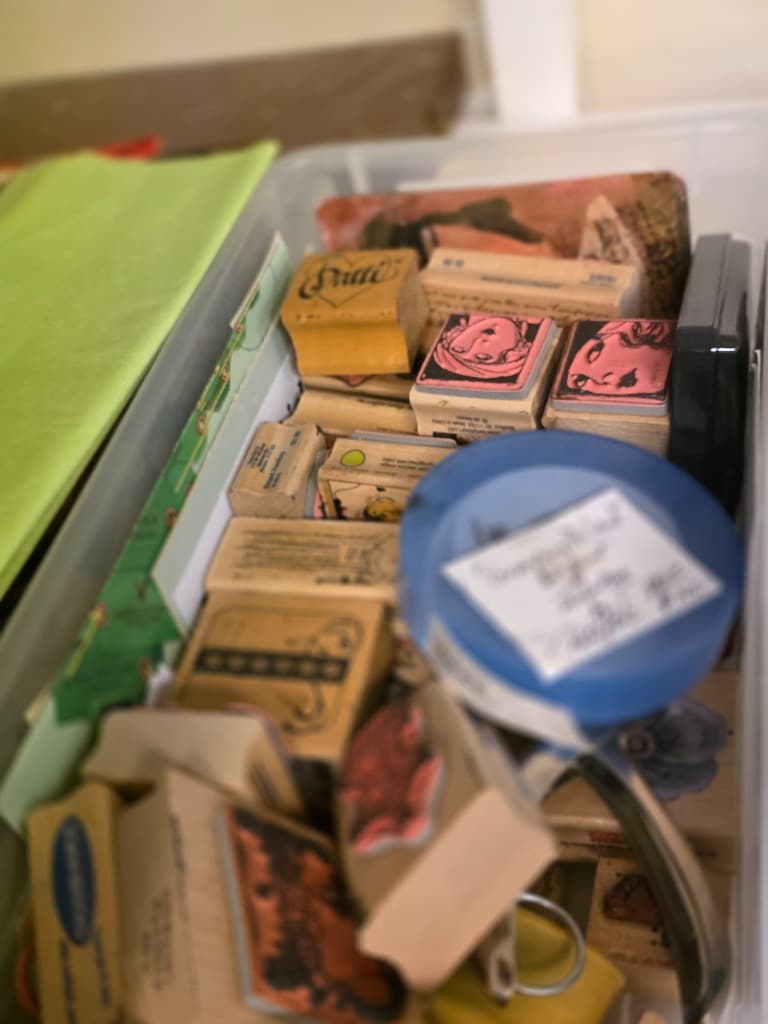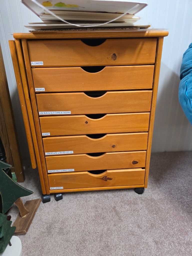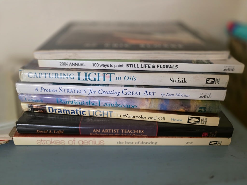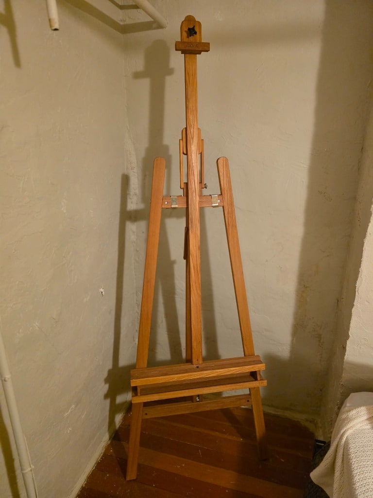 The sale is for a local artist who worked in a variety of media. We have all the things a great artist needs: Canvases, oil paints, water color paints, colored pencils, collage media, easels, paint brushes, stamps, ribbons, supply storage, art method and history books. You just bring your imagination and talent!