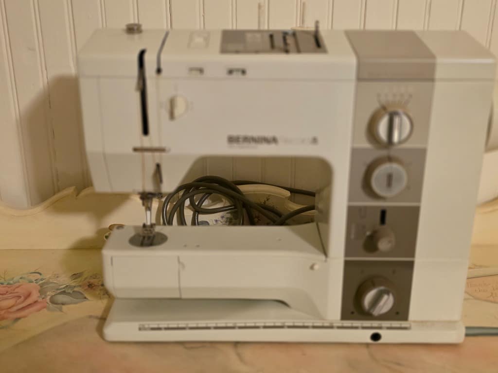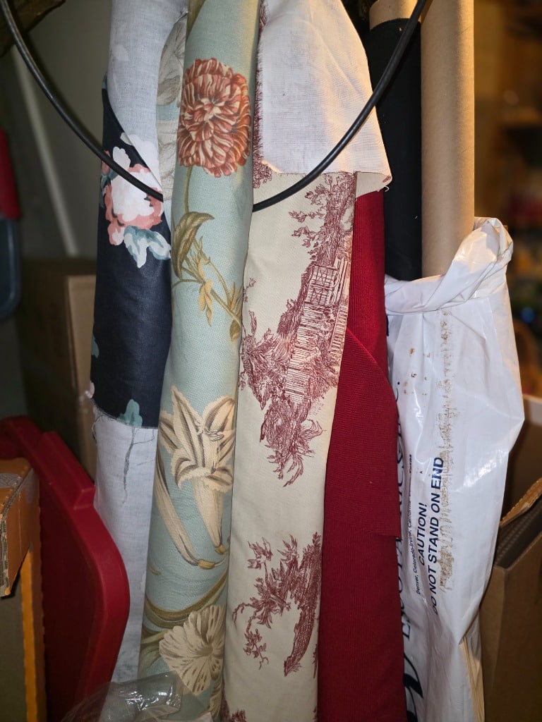 Several bolts of upholstery/curtain fabric and Bernina Record 930 Electronic sewing machine