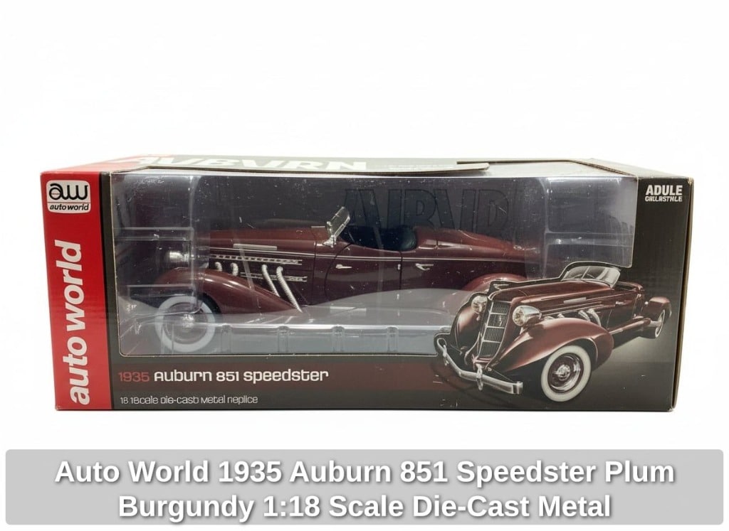 Auto World 1935 Auburn 851 Speedster Plum Burgundy 1:18 Scale Die-Cast Metal Replica (AW262)