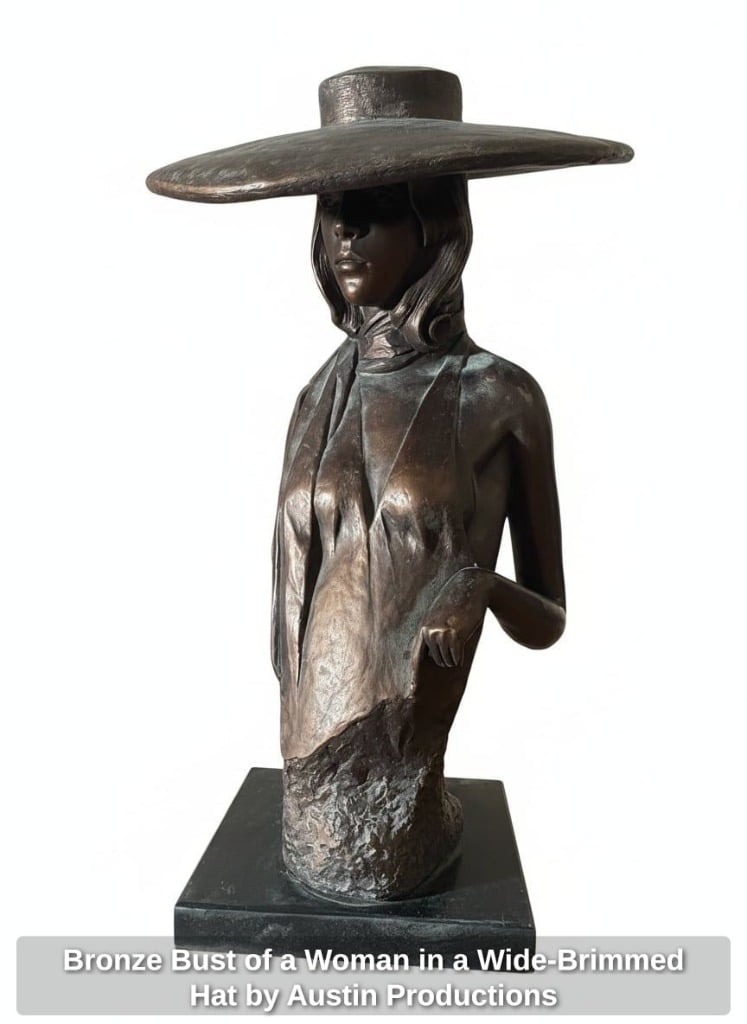 Bronze Bust of a Woman in a Wide-Brimmed Hat by Austin Productions