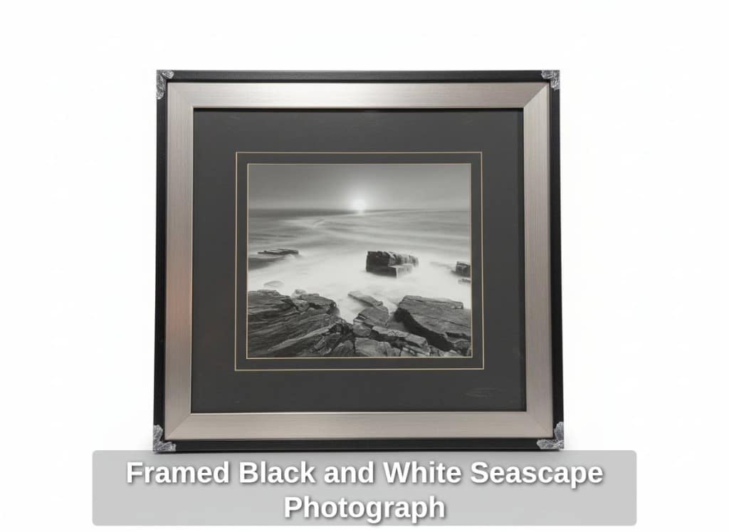 Framed Black and White Seascape Photograph